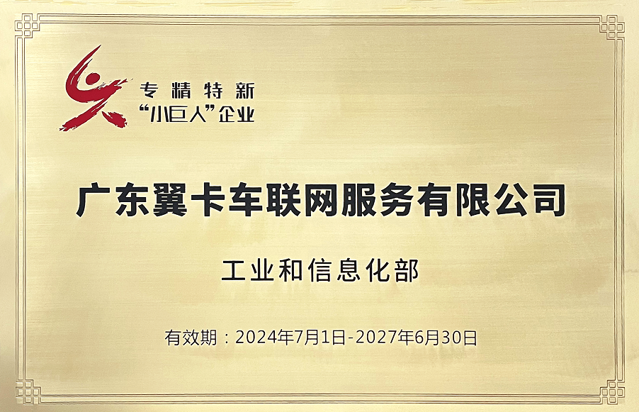 近日,广东省工业和信息化厅权威发布了《第六批专精特新“小巨人”企业名单》,广东翼卡车联网服务有限公司(简称“翼卡车联网”)凭借其在技术创新、市场拓展及品牌建设等方面的卓越表现,荣耀上榜,正式迈入国家级专精特新“小巨人”企业序列。此殊荣不仅是对翼卡车联网过往辉煌成就的肯定,更是对其在推动智能网联汽车产业进步、引领新质生产力发展方面所做贡献的高度认可。